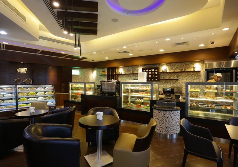 يقع فرع مخابز وأسواق السلطان - النجدة في قلب المدينة مقابل برج فيجن توين